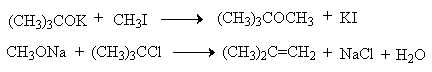 Получение простых эфиров по Вильямсону представляет собой обычную реакцию бимолекулярного нуклеофильного замещения у насыщенного атома углерода с помощью алкоксид- или феноксид-ионов. Если простой эфир содержит вторичную или третичную алкильные группы, ее следует вводить с помощью алкоголята, но не алкилгалогенида или алкилсульфоната, поскольку в противном случае преимущественно или исключительно будет происходить Е2-элиминирование.