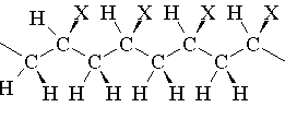 а также и для природных полимеров (белков, полисахаридов, нуклеиновых кислот). Стереоизомерия обусловлена различием в конфигурации тетраэдрического атома углерода, содержащего заместитель Х. Рассмотрим этот тип изомерии более подробно. Поместим углеродный скелет полимерной цепи (-СН2-CHX-)n в плоскость рисунка. Заместители у атома углерода, связи которых обозначены толстыми линиями, направлены к читателю, а заместители, связи которых обозначены тонкими линиями - направлены от читателя.